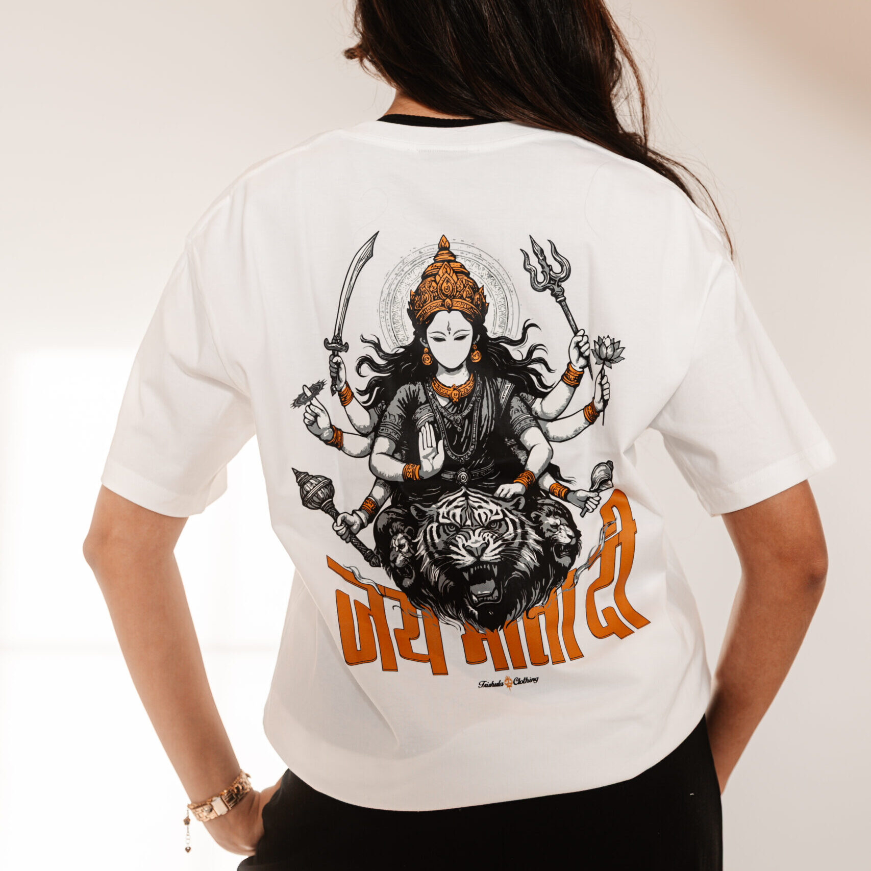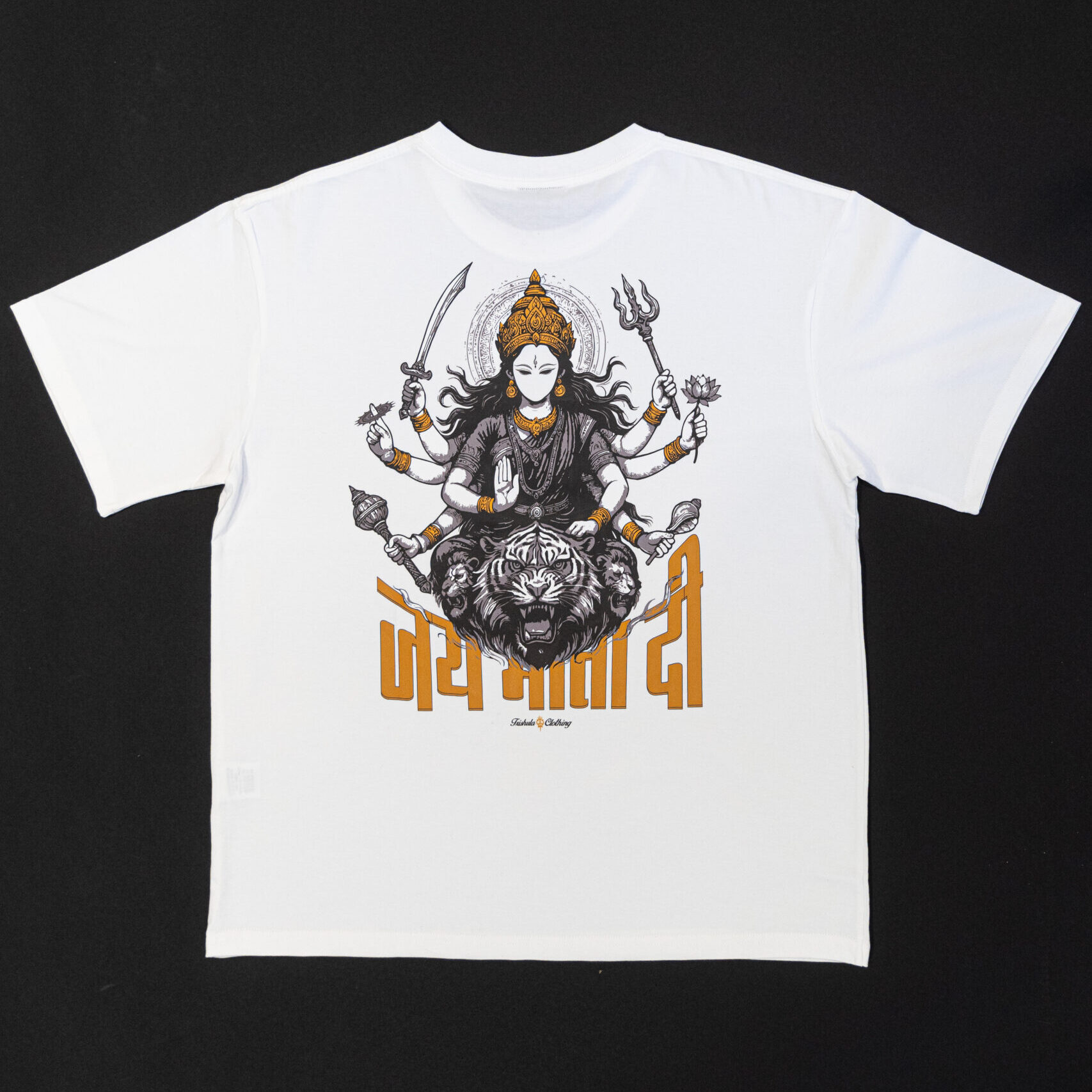 Inspired by Goddess Durga, this powerful design embodies divine feminine strength and fearless protection. Designed to channel her warrior spirit and unwavering courage, it merges ancient mythology with contemporary streetwear. The Durga design represents the triumph of good over evil and the power within.